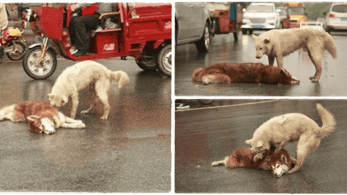 A Fairthful And True Friend.A Husky Refuses To Leave His Friend’s Side Who Was Hit By A Car