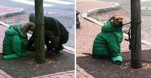 Mom Gives Dog Her Own Coat So He Remains Warm Ready Outside