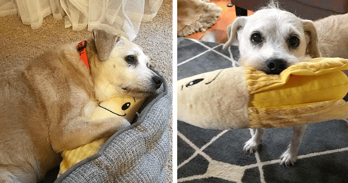 20-Year-Old Dog Still Loves To Snuggle Her Stuffed Banana