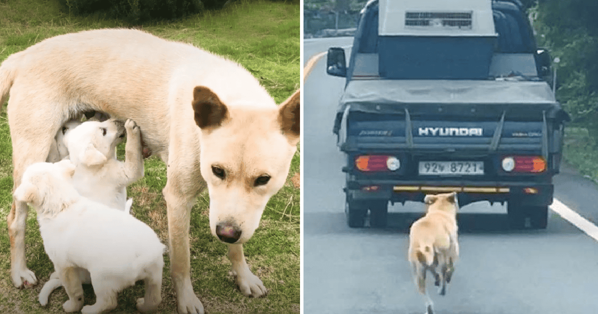 Mama Dog Melts 26M Hearts Chasing After Truck With Her Rescued Babies